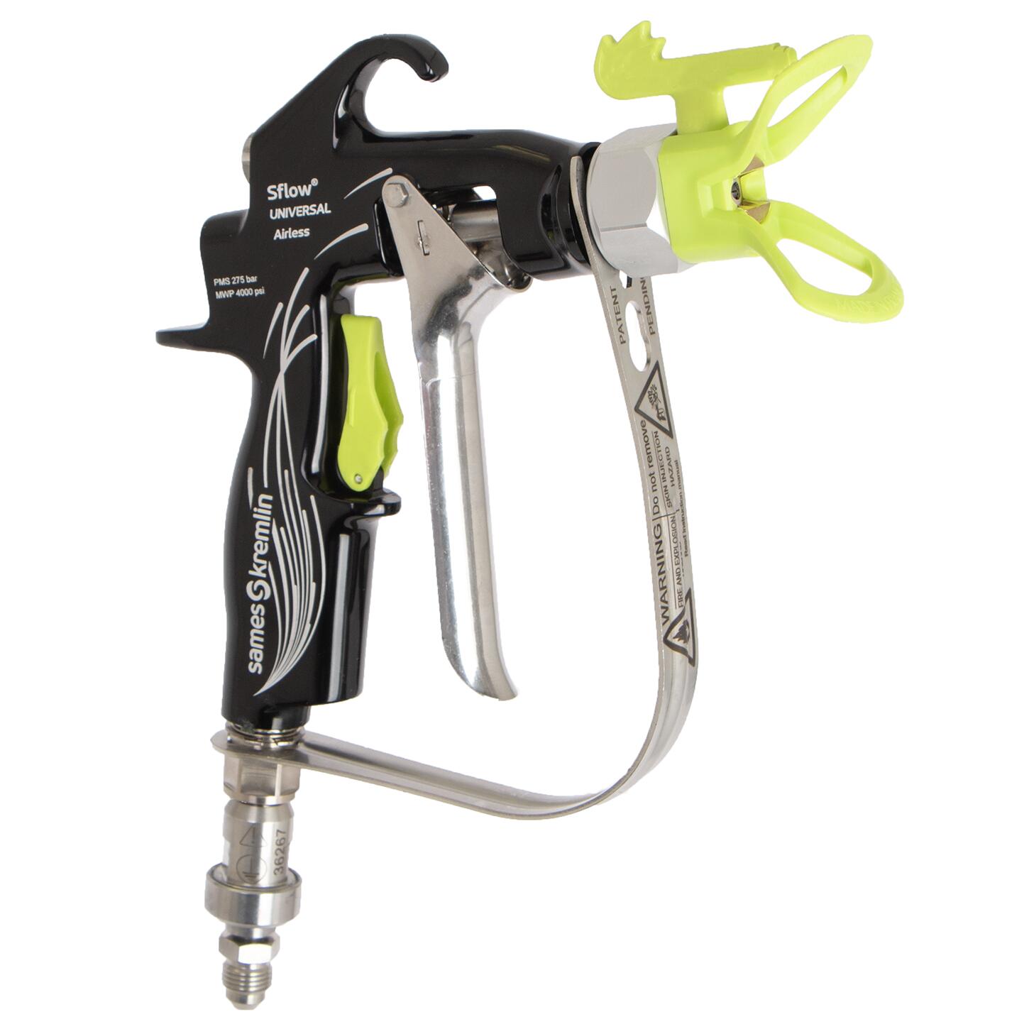 The Sflow 7/8″ Universal Airless paint sprayer provides all the benefits of the Sflow 275 and 470 bar (4000 & 6820 psi). It is fully compatible with every tip guard on the market with a Universal front thread. The ergonomic design offers flexibility in extreme conditions and is ideal for handling high solid content paints and high rich zinc primers.